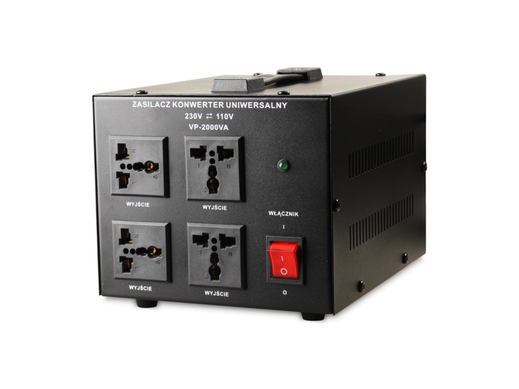 Uniwersalny konwerter napięcia służy do obniżania napięcia zmiennego AC - 230 V do napięcia zmiennego AC - 110 V lub do podwyższania napięcia zmiennego AC - 110 V do napięcia zmiennego AC - 230 V. Urządzenie to przydaje się, gdy chcemy zasilić np.: sprzęt amerykański będąc w Polsce lub sprzęt niemiecki będąc w Wielkiej Brytanii.