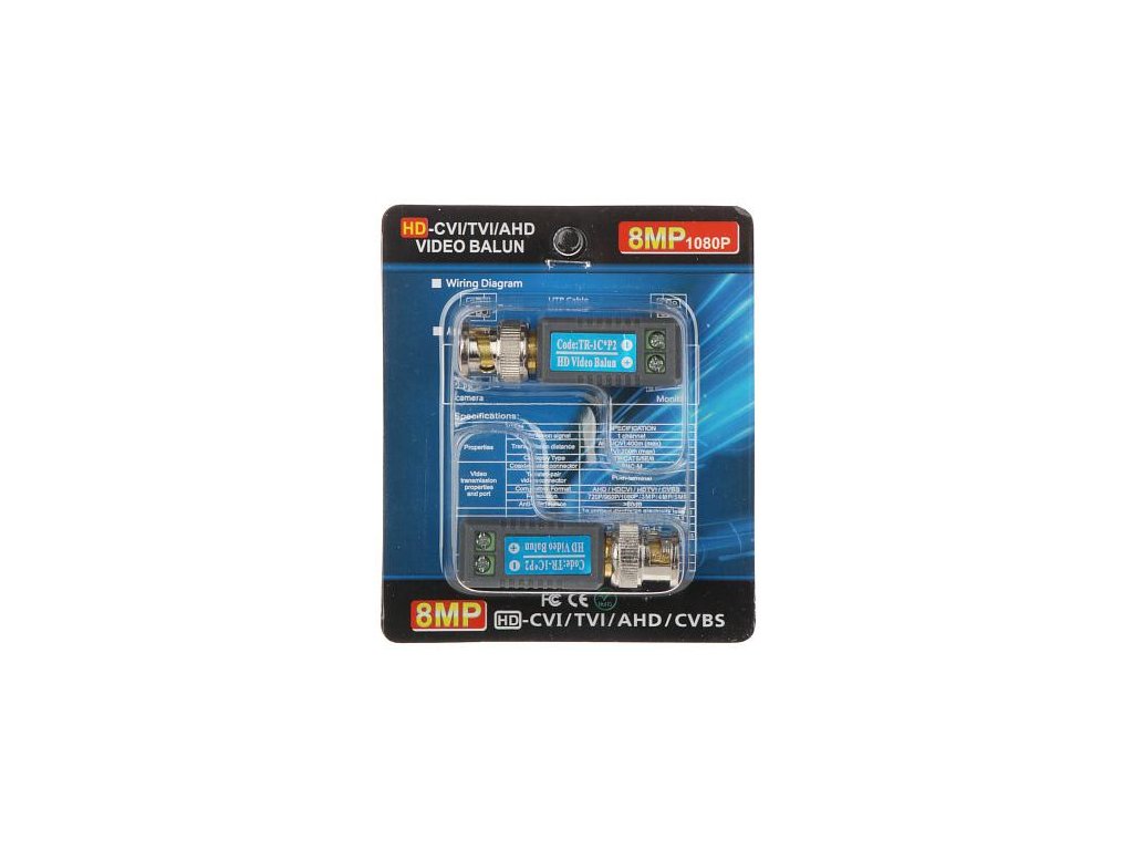 Zestaw dopasowuje impedancję kabla koncentrycznego 75 Ohm do impedancji przewodu symetrycznego (skrętki), zapewnia poprawny przesył sygnału na odległości: