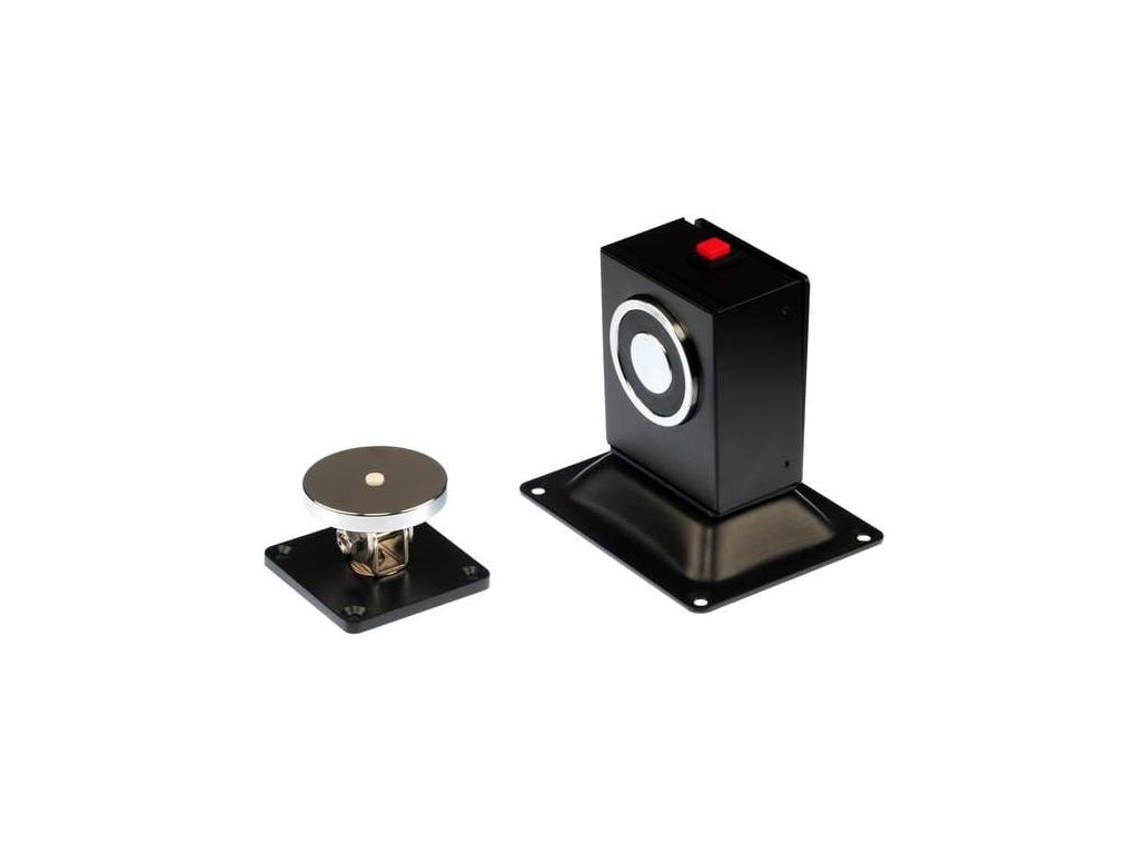 Trzymacz drzwiowy do montażu podłogowego lub naściennego, uniwersalne zasilanie 12/24VDC,sygnalizacja NO/NC, przycisk awaryjny/testowy.