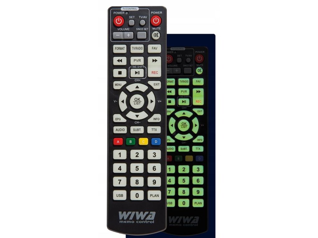 - Pilot z funkcją Memo Control - w który wyposażony został dekoder DVB - T/T2 WIWA H.265 MAXX - posiada fluoroscencyjne, programowalne przyciski umożliwiające obsługę dekodera DVB T/T2 WIWA H.265 MAXX i odbiornika TV jednym pilotem. Dodatkowo dwa złącza USB oraz wyjście COAXIAL zapewniają większą funkcjonalność dekodera DVB -T/T2 WIWA H.265 MAXX w trakcie użytkowania.