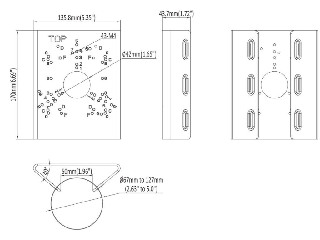 Uchwyt daję możliwość montaż kamery na słupie z możliwością dostosowanie średnicy od 67mm do 127mm.