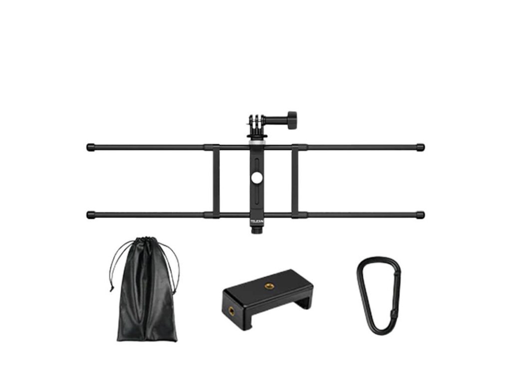 Súčasťou balenia je aj ďalšie príslušenstvo, ktoré umožňuje pohodlnejšie používanie rukoväte. Okrem iného nájdete v balení kožené puzdro, do ktorého môžete uložiť napríklad powerbanku a pohodlne tak nabíjať fotoaparát, umiestnený na plote. Prídavný adaptér a klip zabezpečia, že TELESIN môžete používať rovnako pre videokamery, panoramatické fotoaparáty alebo telefóny. Vďaka tomu je držiak veľmi univerzálny a praktický.
