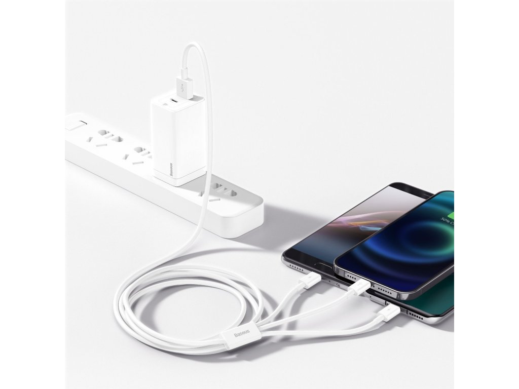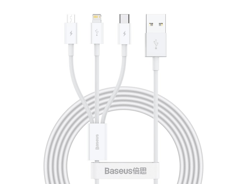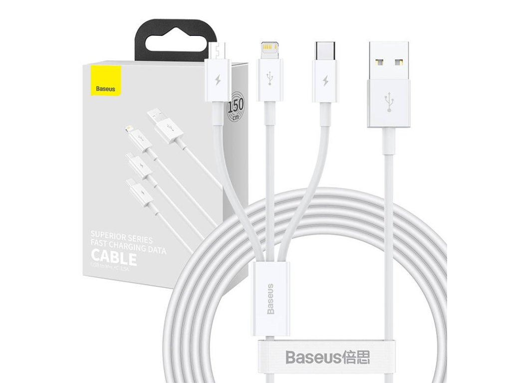USB kábel 3v1 Baseus Superior Series, USB na micro USB / USB-C / Lightning, 3,5 A, 1,5 m (biely)