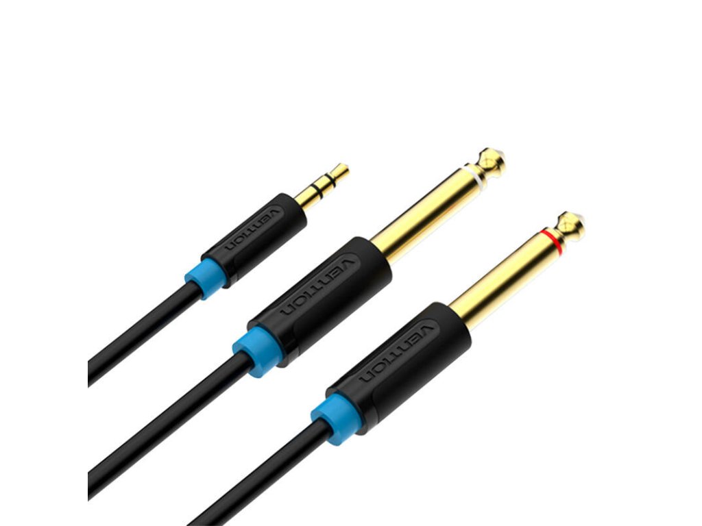Vention BACBJ 5 m audio kábel TRS 3,5 mm samec na 2x 6,35 mm samec (čierny).