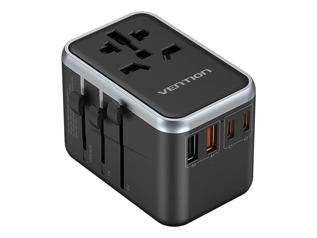 Vention FJFB0 GaN 2xUSB-C 2xUSB-A Universal Travel Adapter 65W (black)