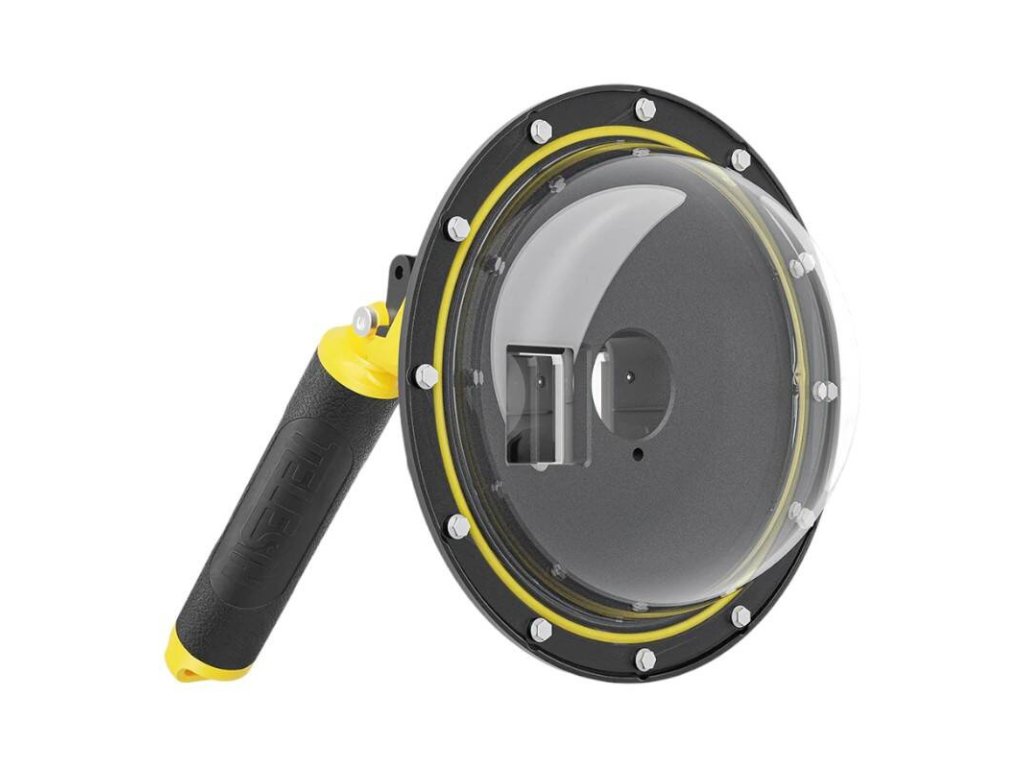 Podvodné puzdro TELESIN umožňuje zachytiť jedinečné fotografie a videá podmorského sveta. Vďaka jeho polkruhovému dizajnu môžete dosiahnuť akváriový efekt s pohľadom 50/50, čo vám umožní zachytiť podvodné a nadvodné krajiny súčasne.