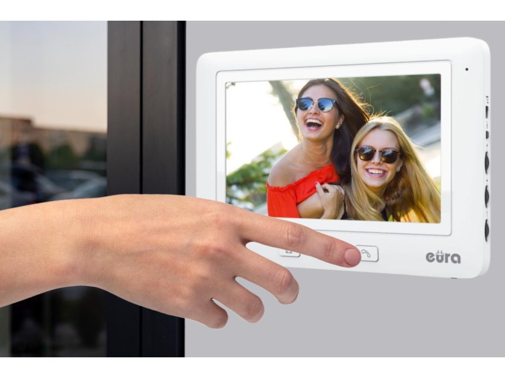 - Monitor głośnomówiący: model EURA VDA-45A3 posiada funkcję głośnomówiącą, co ułatwia komunikację z osobą na zewnątrz.