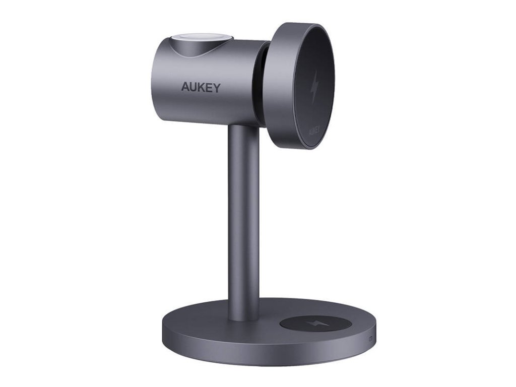 Bezdrôtová nabíjačka MagFusion 3 v 1 Aukey LC-MC311, 15 W Qi2 (sivá).