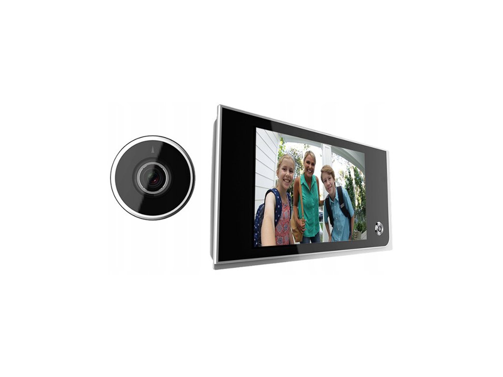 Kamera w wizjerze w wyświetlaczem LCD charakteryzuje się jakościowym wykonaniem oraz nowoczesnym wyglądem, dzięki czemu dopasuje się do każdego wnętrza. Wizjer do kamery posiada ogromny i kolorowy wyświetlacz LCD 3,5” oraz szeroki kąt widzenia – 120 stopni. Kamera HD z wizjerem zasilana jest 4 bateriami AAA, dzięki czemu urządzenie działa przez długi czas bez konieczności wymiany nowego zasilacza. Sprzęt pasuje do 99% drzwi o szerokości 40-100 mm, a jego montaż jest prosty i bezinwazyjny.