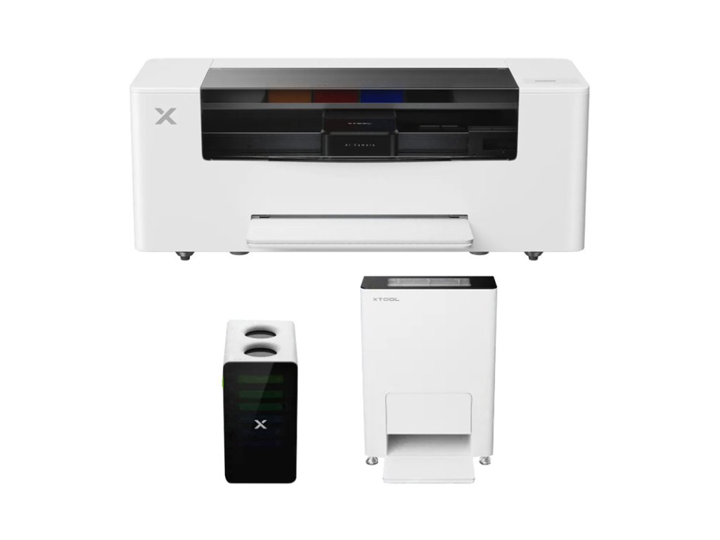 Tlačiareň xTool Apparel Printer je pokročilá tlačiareň odevov určená na profesionálne použitie v textilnom a reklamnom priemysle. Dokáže vytvárať trvalé, plnofarebné výtlačky na všetky typy tkanín - od bavlny a polyesteru cez džínsoviny a plátno až po spandex, nylon alebo kožu. Na rozdiel od sublimácie a sieťotlače umožňuje tlač aj na tmavé materiály, pričom zaručuje živé farby a ostré detaily. Súprava "všetko v jednom" obsahuje aj zariadenia na podporu celého procesu tlače a fixácie - automatický stroj OS1 Shaker Oven Machine na automatické nanášanie a fixáciu lepiaceho prášku a čistič vzduchu SafetyPro™ AP2 Air Purifier, čistič vzduchu na odstraňovanie prachu a zápachu pri práci s laserovým a tepelným zariadením.
