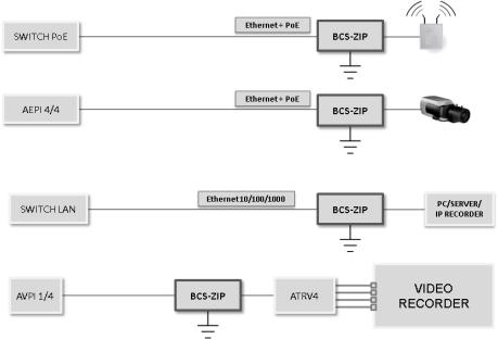 Moduł BCS-ZIP ogranicza przepięcia w sieci ETHERNET przejmując chwilowy impuls udaru elektrycznego. Moduł współpracuje ze wszystkimi standardami zasilania PoE oraz z sieciami Gigabit Ethernet. BCS-ZIP działa również bez podłączonego uziemienia ograniczając przepięcia powstałe między żyłami, a dołączenie uziemienia pozwala na odprowadzenie ładunku do ziemi co zwiększa skuteczność ochrony. Moduł obniża napięcie do bezpiecznego poziomu zmniejszając ilość awarii sprzętu. Nie wymaga zasilania i nie powoduje zakłóceń transmisji danych. Może być elementem zabezpieczającym urządzenia systemów CCTV IP, urządzeń sieci przewodowych ETHERNET, bezprzewodowych WiFi itp.