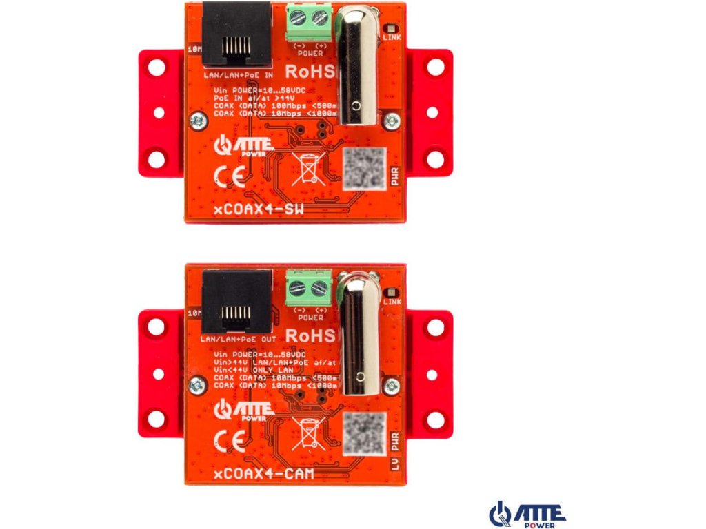 Zestaw aktywnych konwerterów do transmisji Ethernet oraz PoE ATTE xCOAX4-SET