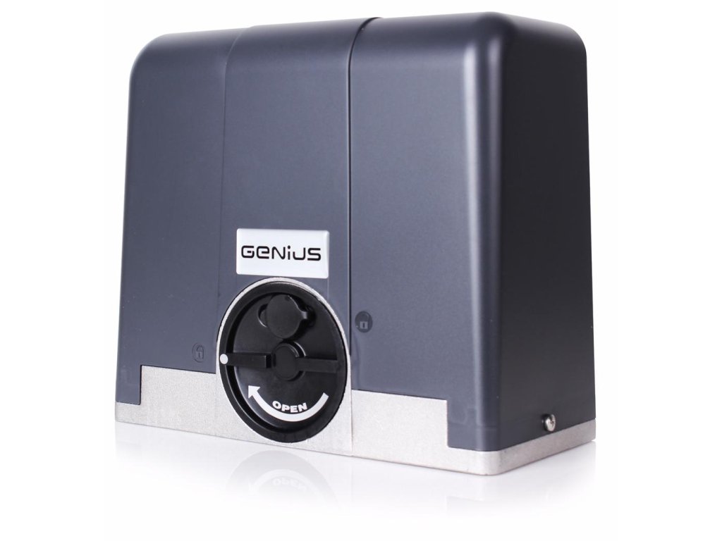 - Napęd GENIUS Blizzard 400 ENC wyposażony w silnik 24V zapewnia pełną kontrolę ruchu bramy i szybkaą reakcję (odwrócenie ruchu) przy napotkaniu przeszkody